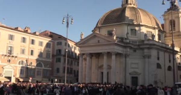 Alcune centinaia di persone hanno accalcato l'ingresso della Chiesa degli Artisti