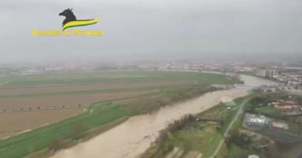 Il fiume in piena ripreso dall'elicottero della Guardia di finanza
