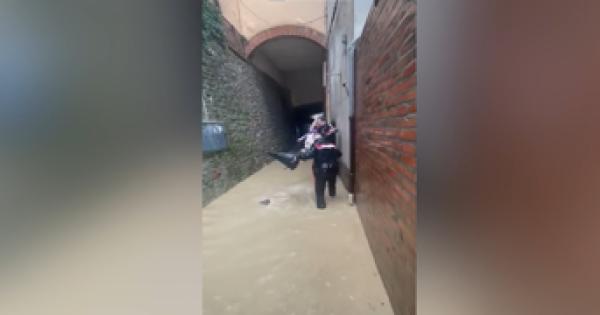L'intervento dei carabinieri a Marradi (Firenze), zona colpita da inondazioni