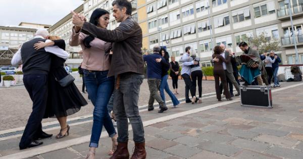 (ANSA) - ROMA, 16 MAR - Decine di coppie di ballerini di tango si sono riuniti questo pomeriggio nel piazzale del Policlinico Gemelli per eseguire il ballo più amato dal Papa argentino. L'iniziativa era stata lanciata nei giorni scorsi dalla ballerina argentina Daiana Guspero: una milonga en plein air sotto l'ospedale romano dove è ricoverato il Pontefice, grande appassionato di tango e della struggente musica sulla quale si muovono i passi di questa danza. "Così gli facciamo sentire la nostra vicinanza, riconoscenza e sostegno", aveva detto Guspero lanciando l'evento. (ANSA).