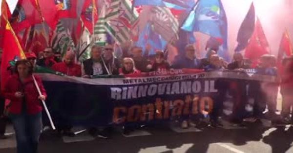 In testa al corteo uno striscione con scritto: "Rinnoviamo il contratto"
