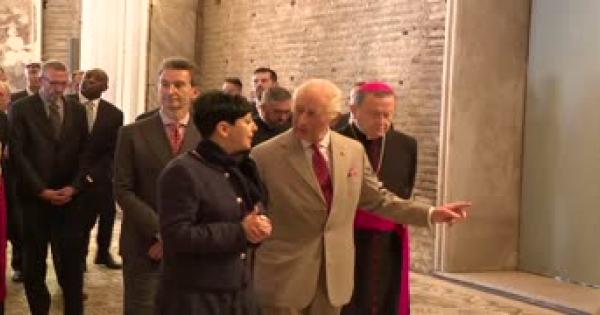 Donato un mosaico che rappresenta l'incoronazione con Camilla: il sovrano mette l'ultima tessera