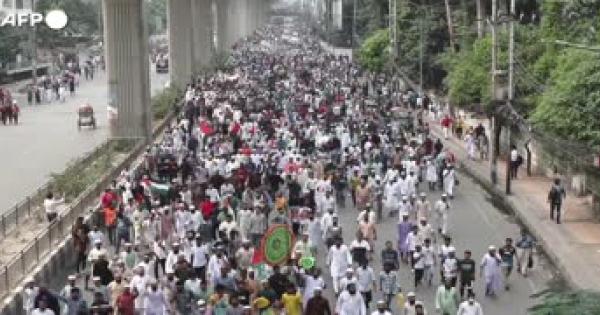 A Dhaka manifestazione di massa contro la guerra nella Striscia