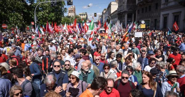 (ANSA) - MILANO, 25 APR - Il corteo di Milano per la manifestazione del 25 Aprile ha raggiunto Piazza Duomo con decine di migliaia di persone che hanno preso parte alla manifestazione e la coda è ancora ferma in porta Venezia, cioè all'inizio del percorso. Il sindaco di Milano Giuseppe Sala ha guidato il corteo nello spezzone di testa con l'Anpi, seguito dal segretario della Cgil Maurizio Landini. L'arrivo in Piazza Duomo é stato accompagnato da musiche partigiane suonate dalla banda. Tra poco ci saranno gli interventi dal palco di Sala e Landini, insieme a quello della partigiana Sandra Gilardelli e del presidente nazionale dell'Anpi Gianfranco Pagliarulo. Lo spezzone della Brigata ebraica si è sciolto per motivi di ordine pubblico all'incrocio tra via Grossi e via Santa Margherita, poco prima dell'arrivo in piazza Duomo. (ANSA).