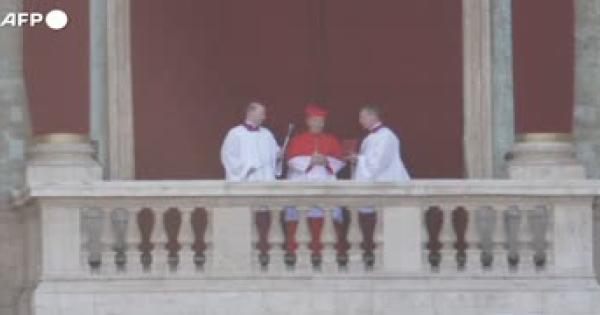 Il cardinale protodiacono Dominique Mamberti pronuncia l'Habemus Papam