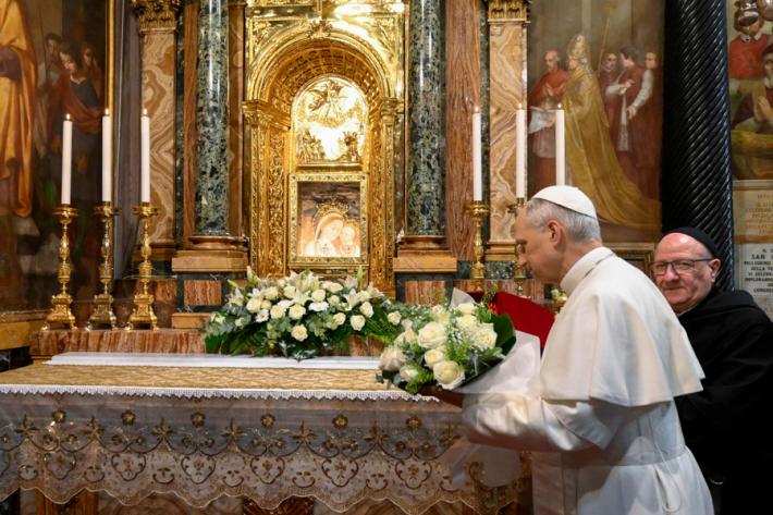 Dopo la visita a sorpresa al Santuario Madre del buon consiglio a Genazzano, papa Leone XIV è andato a Santa Maria Maggiore per pregare in forma privata sulla tomba del suo predecessore Francesco.