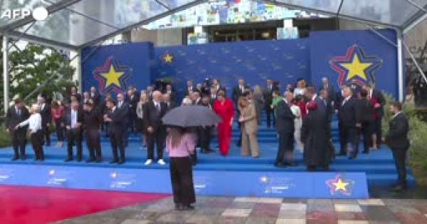 Foto di gruppo con pioggia per i leader accolti dal premier albanese Rama