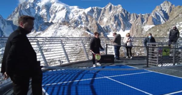 Nel 2021 sul Monte Bianco il palleggio di tennis piu' alto di sempre con Samsonova