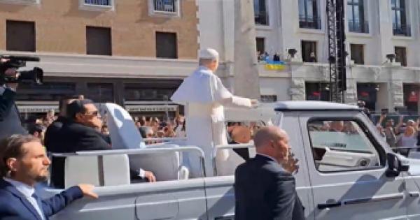 Esposta da una suora da una finestra dell'Auditorium in via della Conciliazione