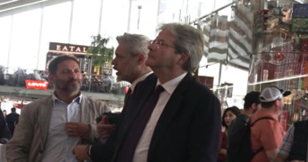 Tra i passeggeri in attesa anche il commissario Ue all'economia Paolo Gentiloni