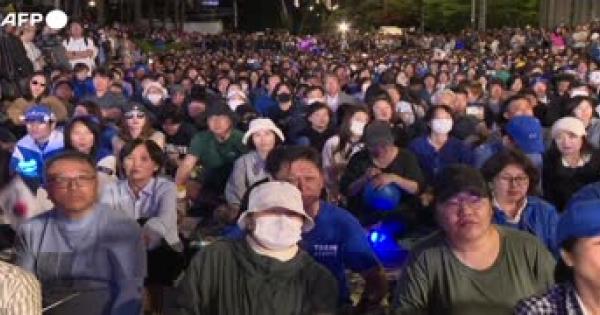 Radunati davanti a un maxi-schermo, seguono l'arrivo dei dati minuto per minuto