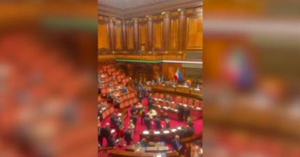 I senatori di Pd, M5s e Avs seduti a terra urlano: 'Vergogna, vergogna