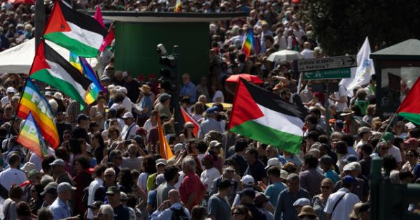 (ANSA) - ROMA, 07 GIU - "Sono oltre 300 mila" le persone che partecipano a Roma alla manifestazione per Gaza promossa da Pd, M5s, Avs. Lo riferiscono gli organizzatori dal palco. Il corteo è partito da Piazza Vittorio ed è arrivato a piazza san Giovanni dove sono in corso gli interventi dal palco. (ANSA).