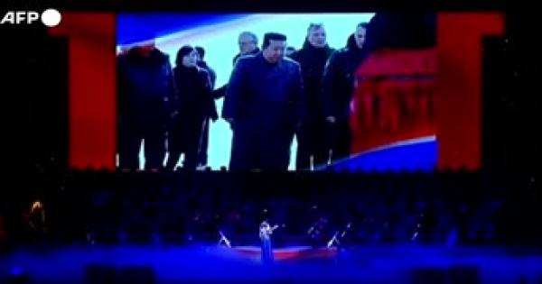 Le immagini delle bare mostrate durante un evento commemorativo dell'alleanza russo-nordcoreana