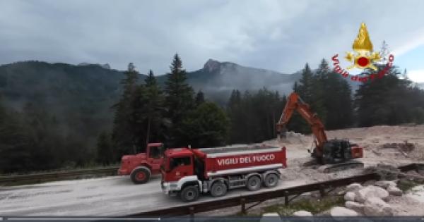 Dopo la frana che ha bloccato la strada in localita' Dogana Vechia, nel Bellunese