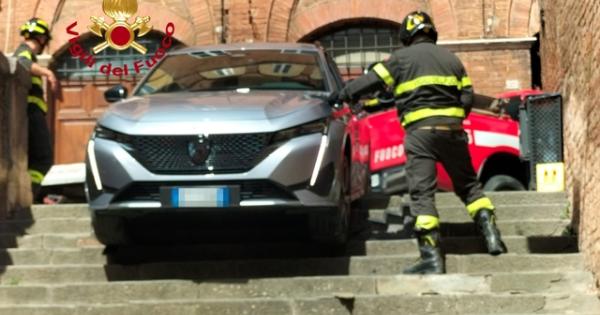 (ANSA) - SIENA, 27 LUG - Hanno seguito le indicazioni del Gps ma sono finiti con l'auto incastrata in una scalinata. E' la disavventura capitata nel primo pomeriggio di oggi a 3 turisti brasiliani nel centro storico di Siena. Necessario l'intervento dei vigili del fuoco, intervenuti tra via San Martino e vicolo dell'Oro in soccorso del conducente rimasto bloccato sulla vettura finita sulla scalinata. La squadra ha provveduto a mettere in sicurezza la macchina attraverso una fascia collegata al mezzo dei vigili del fuoco per evitare un ulteriore scivolamento e ha consentito di uscire dall'auto al conducente che stava mantenendo azionato il pedale del freno. Altre due persone che si trovavano a bordo sono uscite in autonomia. L'intervento è terminato con il recupero della macchina. Sul posto anche la polizia municipale che, per consentire il soccorso, ha temporaneamente chiuso al transito dei veicoli le vie vicine. (ANSA).