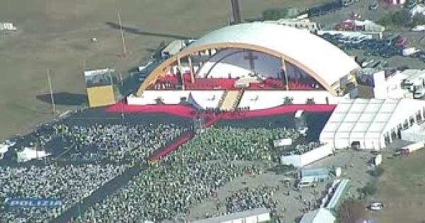 Il pontefice saluta i giovani, che ricambiano con peluche e bandiere