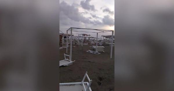 La tromba d’aria che nella notte ha colpito la Versilia, in modo particolare Marina di Pietrasanta ha causato danni ad alcuni stabilimenti balneari della zona. La zona più colpita è stata Fiumetto, dove la forza del vento ha fatto volare ombrelloni, sdraio e lettini e danneggiato parte delle attrezzature presenti sulle spiagge. Non ci sono state persona coinvolte, fortunatamente. Nel video che proponiamo i pesanti danni creati al bagno "La Perla" di Marina di Pietrasanta.