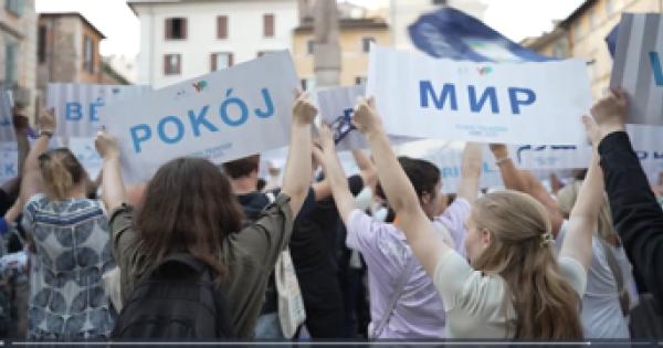 Manifestazione organizzata dalla Comunita' di Sant'Egidio. Folta presenza di ucraini