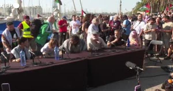 L'attivista prima della partenza da Barcellona della nuova Flotilla per Gaza