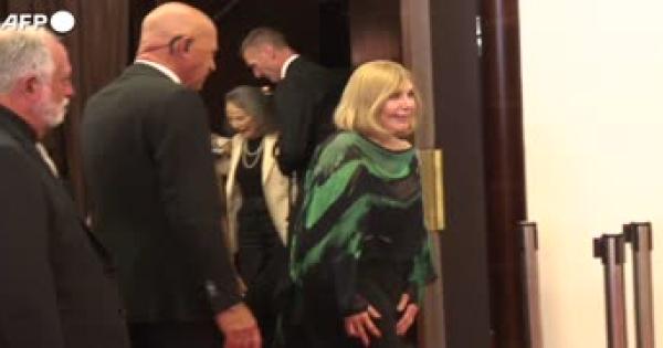 L'attrice hollywoodiana mostra il suo premio sul red carpet