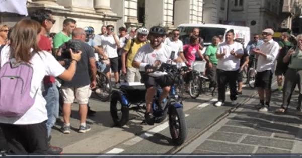 L'attivista affetto da paralisi spastica in triciclo per 800 km con sette tappe fino a Roma