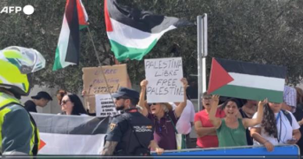 Attivisti filo-palestinesi anche a Robledo de Chavela, partenza della penultima tappa