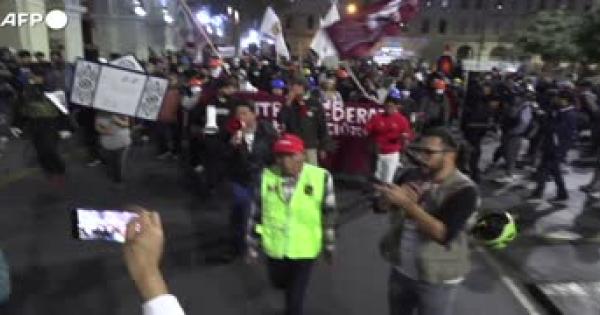 La polizia lancia gas lacrimogeni per disperdere i manifestanti