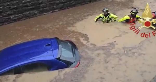 Soccorso un automobilista in un sottopasso allagato