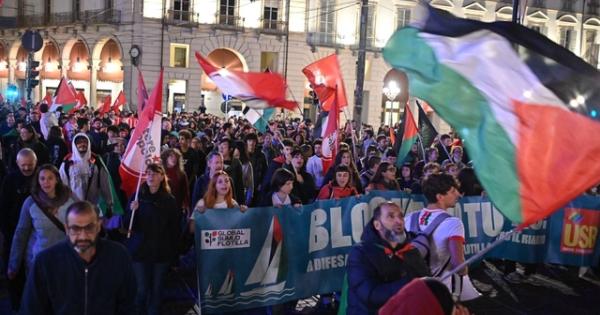 Flotilla: il corteo a Torino protesta sotto la Rai