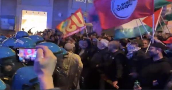L'iniziale blocco in via del Tritone, poi viene consentito l'arrivo a piazza S. Silvestro