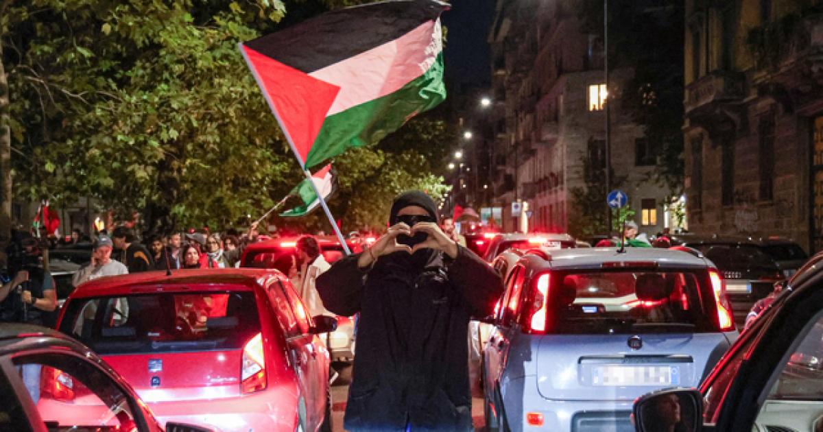 (ANSA) - MILANO, 03 OTT - È ripartito da piazzale Loreto il corteo pro Palestina, al momento all'altezza dei bastioni di Porta Venezia in piazza Oberdan. I manifestanti, in poche centinaia, hanno percorso corso Buenos Aires. Nelle prime file gli attivisti si sono seduti sull'asfalto e sventolando le bandiere palestinesi al coro di "free free Palestine". (ANSA).