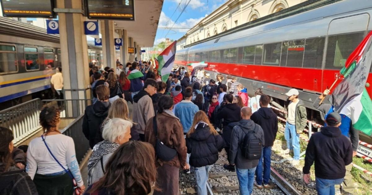 (ANSA) - PERUGIA, 03 OTT - Sospesa la circolazione dei treni alla stazione di Perugia dopo che i manifestanti in occasione dello sciopero generale hanno raggiunto lo scalo per poi invadere i binari. Diversi quelli che hanno percorso un tratto di ferrovia con bandiere e lanciando slogan. Le forze di polizia presidiano la zona e al momento non si registrano incidenti. (ANSA).