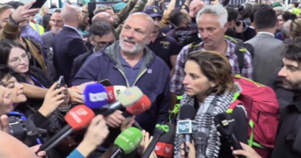 L'eurodeputata Scuderi (Avs) e il senatore Croatti (M5s) appena sbarcati a Fiumicino