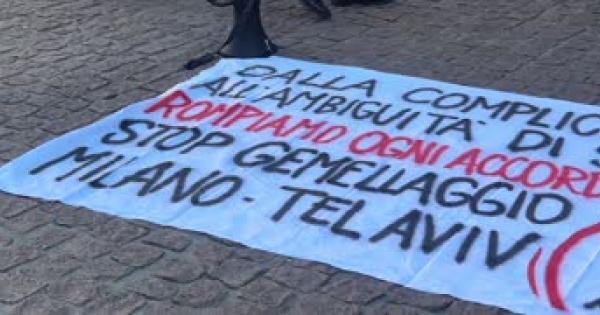 Manifestanti in piazza a Milano per sostenere la mozione di Carlo Monguzzi