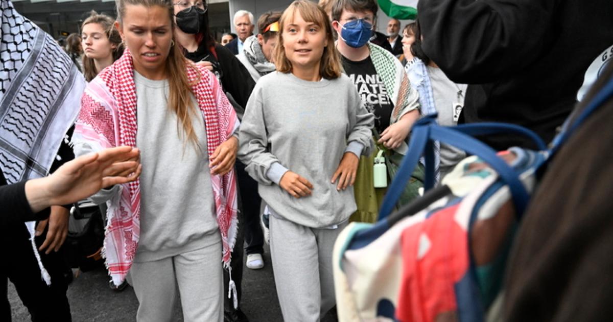 (ANSA) - STOCCOLMA, 07 OTT - L'attivista svedese Greta Thunberg è atterrata questo pomeriggio all'aeroporto di Stoccolma Arlanda insieme ad altri attivisti svedesi che hanno fatto parte della Flotilla. Tra questi c'era anche la parlamentare svedese Lorena Delgado Vargas. Al loro arrivo nella sala arrivi sono stati accolti da applausi e grida "free Palestine". A breve gli attivisti terranno una conferenza stampa. (ANSA).