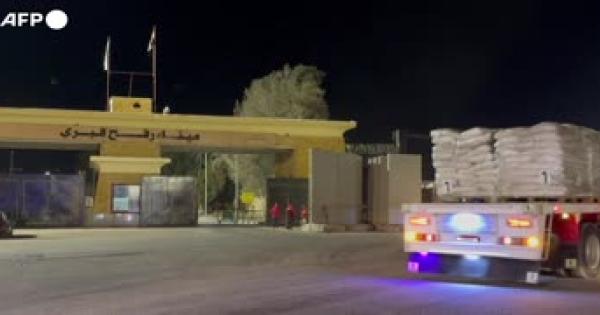Dal lato egiziano, i camion trasportano cibo e forniture mediche