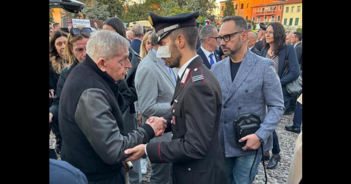 (ANSA) - PADOVA, 17 OTT - "Ti sei bruciato il nasino. Dai che ti è andata bene. Non a Marco". E' la breve battuta che Luigi, l'anziano padre di Marco Piffari, morto nella strage di Castel D'Azzano (Verona) ha fatto a un commilitone del figlio, rimasto ferito martedì scorso e presente ai funerali con una vistosa benda al naso. Luigi Piffari ha assistito alla cerimonia in prima fila assieme ai familiari del figlio, incerto nel camminare, sorreggendosi con un bastone. Ha parlato a lungo anche con il presidente della Repubblica Mattarella, all'uscita sul sagrato della Basilica di Santa Giustina. (ANSA).