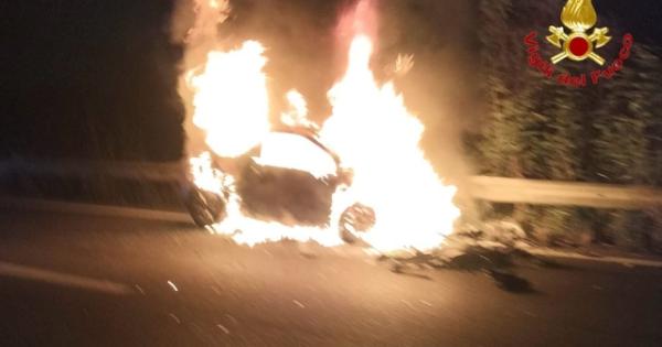 Auto a fuoco dopo frontale, giovane grave nel Milanese