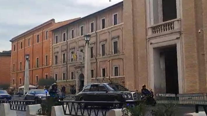 (ANSA) - CITTÀ DEL VATICANO, 23 OTT - I sovrani inglesi Carlo e Camilla sono arrivati in Vaticano per la loro visita di Stato. Il corteo è passato per Via della Conciliazione, è entrato a Piazza San Pietro per superare l'Arco delle Campane e raggiungere il Cortile di San Damaso dove, prima di entrare nel Palazzo apostolico per l'incontro con il Papa, sono stati accolti dal picchetto d'onore. (ANSA).