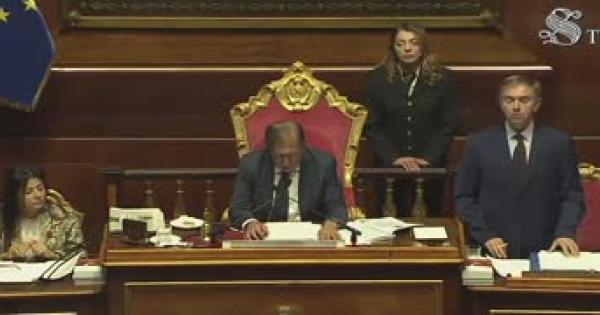 Opposizioni con cartelli "No ai pieni poteri", applausi dal centrodestra