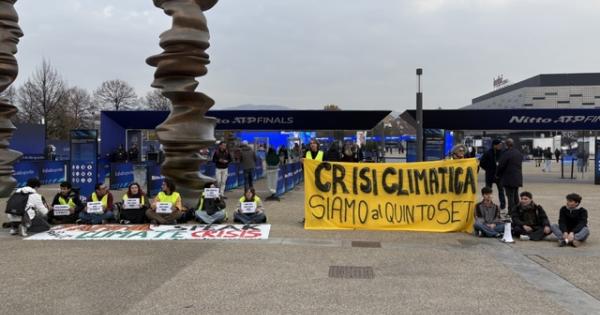 (ANSA) - TORINO, 14 NOV - Alcune decine di attivisti di Fridays For Future ed Extinction Rebellion hanno organizzato questo pomeriggio un presidio davanti ai tornelli dell'Inalpi Arena di Torino, al termine del corteo dello Sciopero Globale per il Clima, dove si disputano in questi giorni le Atp Finals. I manifestanti si sono seduti davanti agli ingressi intonando cori. Sono anche stati esposti due striscioni: "Sinner, speak about climate" e "Crisi climatica: ultimo set!". Per gli attivisti la crisi climatica "è diventata un tema sempre più secondario nella comunicazione pubblica" e invitano il mondo dello sport "a prendere posizione". "Il mondo dello sport può prendere voce per dare risalto alla battaglia per la giustizia climatica", spiega Tommaso di Fridays For Future, secondo cui Torino "supera continuamente i limiti Oms per la respirabilità dell'aria rendendo pericoloso per la salute fare sport all'aperto". Il movimento punta il dito anche sul contesto internazionale: "In piena Cop30 gli investimenti globali non possono essere per il riarmo, ma per una giusta transizione: oggi attraverso lo sciopero della mattina e qui di fronte alle Atp vogliamo ricordare ai governi che le loro colpe per gli effetti della giustizia climatica non sono state dimenticate e che devono agire ora per limitarne gli effetti". Secondo gli ambientalisti "grandi eventi costosi e militarizzati non possono far dimenticare che la città non si sta preparando alle conseguenze della crisi climatica". Inoltre chiedono "azioni concrete contro cementificazione e mobilità insostenibile" e sostengono che Torino debba "proporre un modello diverso, in linea con le moderne necessità e con le azioni già adottate in molte città europee". (ANSA).