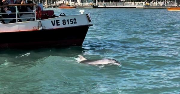 (ANSA) - VENEZIA, 15 NOV - Stamattina "Mimmo", il delfino che da oltre un mese nuota nel bacino di San Marco a Venezia, è stato spinto a spostarsi in acque più tranquille, verso il mare aperto. Le operazioni, coordinate dalla Capitaneria di Porto, hanno coinvolto Guardia costiera, Vigili del fuoco, Guardia di Finanza, Polizia locale e Protezione civile. Ha collaborato l'Università degli Studi di Padova. Grazie all'aiuto di un sonar, il cetaceo è stato "guidato" dalle imbarcazioni e si è prima diretto verso i Giardini della Biennale, dove le acque sono più profonde. Qui è stato visto compiere qualche salto fuori dall'acqua, poi si è immerso e ha fatto perdere le proprie tracce. Il monitoraggio continuerà nei prossimi giorni per capire se l'animale si sia definitivamente allontanato verso il mare aperto o se, in futuro, tornerà nuovamente nelle acque - molto trafficate e quindi pericolose - del bacino di San Marco. (ANSA).