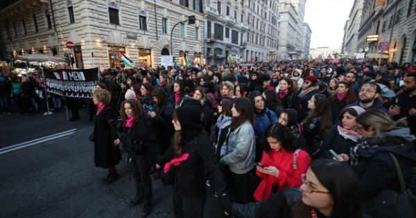 (ANSA) - ROMA, 22 NOV - Fumogeni fucsia che colorano il cielo, chiavi che tintinnano come un allarme collettivo, cartelli e bandiere che sventolano a perdita d'occhio. Settantamila persone, secondo le organizzatrici, hanno partecipato al corteo nazionale transfemminista di Non una di Meno, che ha sfilato a Roma per dire no alla violenza e al patriarcato. Lo slogan "Sabotiamo guerre e patriarcato" a scandire ogni passo della marea fucsia, mentre sullo sfondo rimbalzano ancora le parole di Nordio e Roccella, che hanno acceso il dibattito politico delle ultime ore. "Siamo tutte transfemministe", urla la testa del corteo partito da piazza della Repubblica e arrivato a San Giovanni. In via Merulana uno dei momenti simbolici della giornata: il silenzio, le candele. E l'omaggio a Ornella Vanoni con "La voglia, la pazzia". Poco prima alcuni manifestanti avevano bruciato cartelli di Pro Vita e Famiglia vicino alla sede dell'associazione antiabortista. La polemica però non si placa dopo le parole del ministro Nordio. "Nel codice genetico dell'uomo c'è una resistenza alla parità dei sessi", aveva detto ieri. E oggi a tornando sull'argomento dice: "Molto rumore per nulla". E ancora: "Ho detto quello che pensano tutti". Ma in piazza a rispondere sono in molti. Anche persone dello spettacolo. La regista Paola Cortellesi ha parlato di "sconforto" e di una società che "deve cambiare", mentre Anna Foglietta ha definito "non condivisibili" le parole del governo: "La violenza va affrontata senza bandiere". La manifestazione si chiude tra cori e musica, con l'associazione che denuncia 78 femminicidi dall'inizio dell'anno e chiede interventi strutturali, non slogan: "La violenza patriarcale non è emergenza. È sistema". Mentre il corteo era alle battute finali i ministri Roccella e Valditara, in un'altra parte di Roma, dopo l'accensione del tempio di Venere, hanno presentato 'Corri Libera' la marcia in programma domani mattina con partenza dal Colosseo: 5mila le iscrizioni raggiunte. "Domani sarà una bella manifestazione di libertà, di volontà di essere uniti in modo non scontato contro la violenza sulle donne" ha detto la ministra per la Famiglia, la Natalità e le Pari Opportunità, Eugenia Roccella. Anche il ministro dell'Istruzione e del Merito, Giuseppe Valditara ha auspicato che "in queste giornate ci possa essere un comune sentire anche fra le forze politiche e non solo, lasciando da parte le polemiche, ma impegnandoci tutti insieme per stroncare la violenza sulle donne, per creare una società del rispetto partendo dalle scuole". (ANSA).