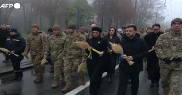 Il presidente alla commemorazione a Kiev con la First Lady Olena Zelenska