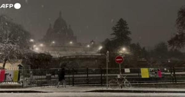 Intensa nevicata imbianca la capitale francese e la gente gioca a palle di neve