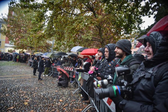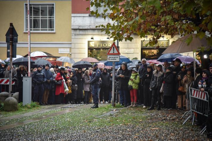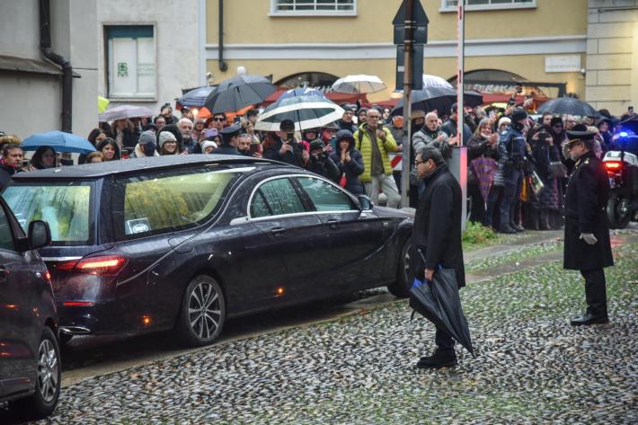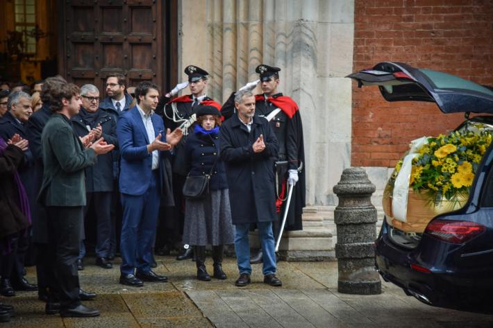 Solo le prime file sono riservate ai famigliari e agli amici più stretti, fra di loro Dori Ghezzi, Roberto Vecchioni e Mario Lavezzi. Attesi il sindaco Giuseppe Sala, il presidente del Senato Ignazio La Russa e la ministra dell’Università Anna Maria Bernini.