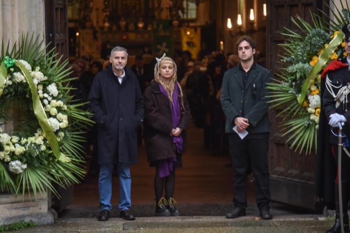 Presenti i gonfaloni di Regione Lombardia e Comune di Milano, che ha indetto il lutto cittadino e corone di fiori fra gli altri di Maria De Filippi, l’artista Francesco Vezzoli, il Piccolo Teatro, Pier Silvio Berlusconi e Silvia Toffanin, oltre che di Mahmood con la scritta "delle stelle la tua voce presente".
