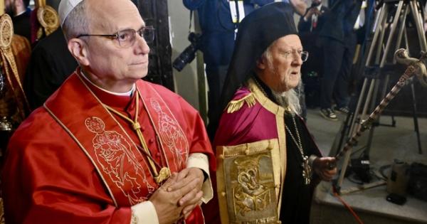 (ANSA) - ISTANBUL, 29 NOV - "Rifiutiamo qualsiasi uso della religione e del Nome di Dio per giustificare la violenza. Crediamo che un autentico dialogo interreligioso, lungi dall'essere causa di sincretismo e confusione, sia essenziale per la convivenza di popoli appartenenti a tradizioni e culture diverse". E' quanto si legge nella dichiarazione firmata a Istanbul dal Papa e dal Patriarca Bartolomeo. "Esortiamo tutti gli uomini e le donne di buona volontà a lavorare insieme per costruire un mondo più giusto e solidale e a prendersi cura del creato, che Dio ci ha affidato. Solo così la famiglia umana potrà superare l'indifferenza, il desiderio di dominio, l'avidità di profitto e la xenofobia". (ANSA).