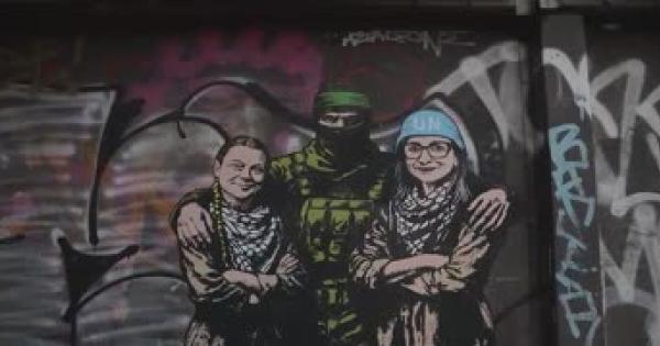 L'opera di aleXsandro Palombo e' apparsa in piazza XXIV Maggio, dove oggi partira' il corteo pro-Pal